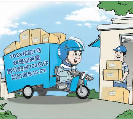 中國國家郵政局發(fā)布的最新數(shù)據(jù)顯示,2023年前7月,中國快遞業(yè)務(wù)量同比增長15.5%。
