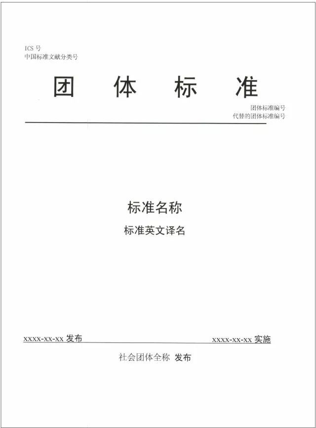 團(tuán)體標(biāo)準(zhǔn)的封面格式應(yīng)當(dāng)符合要求,具體格式見附件。