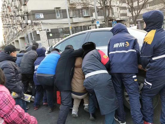 2018年1月26日早上7點(diǎn)40分左右,北京市海淀區(qū)永泰莊西路清北京公共交通集團(tuán)公司黨校門口的十字路口,一對母女被一輛黑色轎車撞倒在地,母親的腿被壓在車輪底下,周圍的保安、外賣小哥,路人第一時(shí)間過來幫車主把這輛車抬起來,德邦北京海淀區(qū)林萃橋快遞點(diǎn)部的三位快遞小哥也趕緊停車,一起幫忙抬車救人。