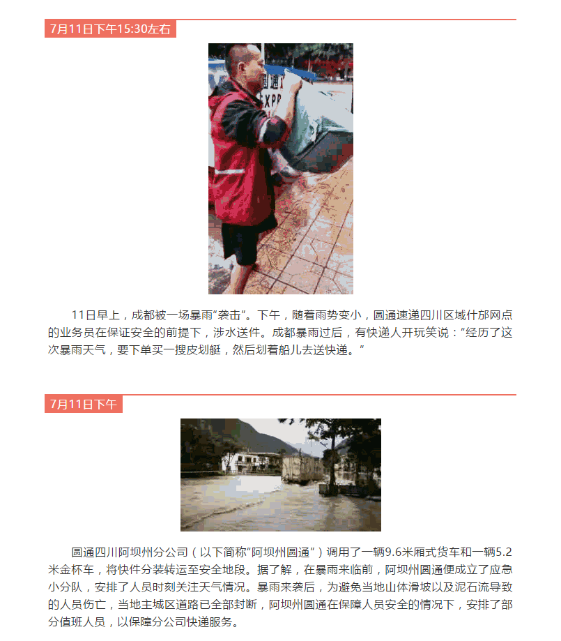 多地開啟“暴雨模式”,圓通小哥蹚水送件!