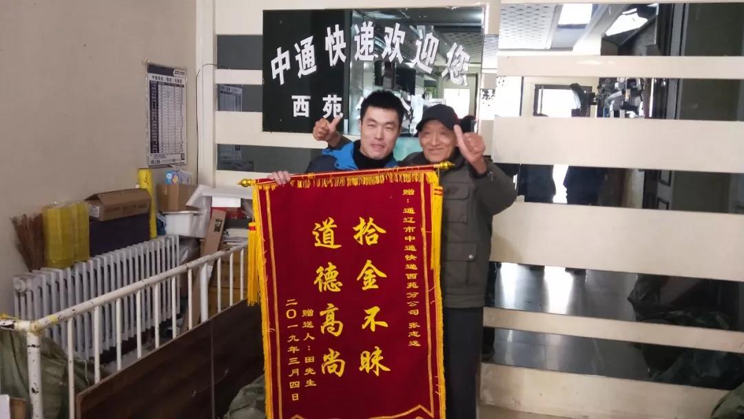 3月4日上午,老人來到通遼市西苑分部網(wǎng)點找到了張志遠,送上了一面寫有“拾金不昧 道德高尚”的錦旗,“通遼的好人,通遼的雷鋒,這是我的一點心意。”老人緊緊握著張志遠的手表達謝意。“多虧了中通員工張志遠,要不是碰著這樣好人的話,這錢實在渺茫。”